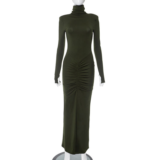 Autumn And Winter New High Neck Long Sleeve Fashion Pleated Dress
