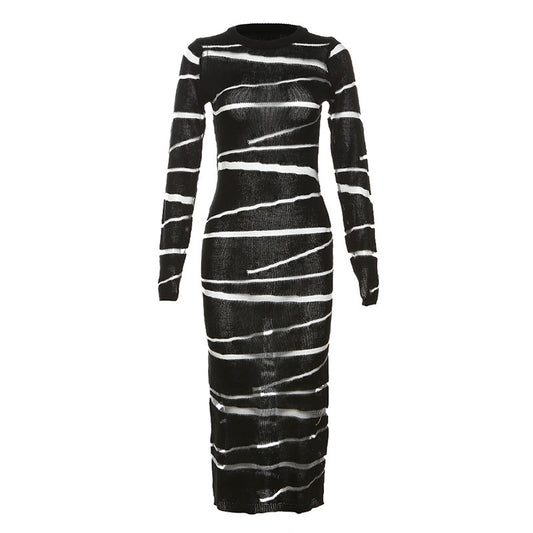 Autumn And Winter New Striped Sheath Long Dress