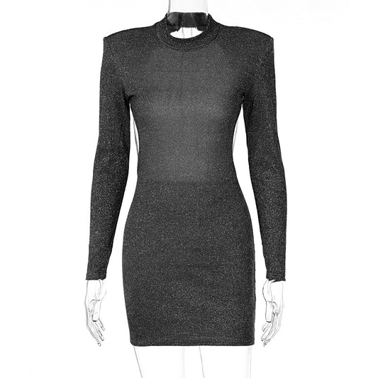 Back Lace Up Slim Fit Hollow Long Sleeve Dress