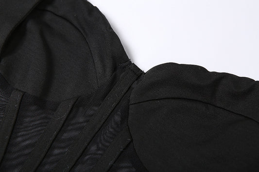 Autumn Mesh Stitching See-through High Waist Sheath Long Dress
