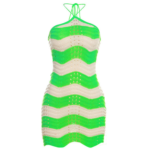 Double-sided High Slit Sling Beautiful Back Knitted Dress
