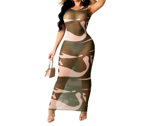 Mesh Perspective Cool Sleeveless Slim Fit Dress