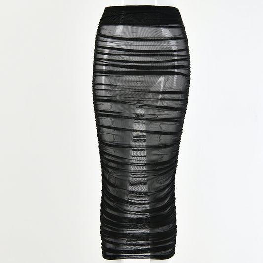 Fashion Sexy Women Mesh See-Through High Waist Skirt