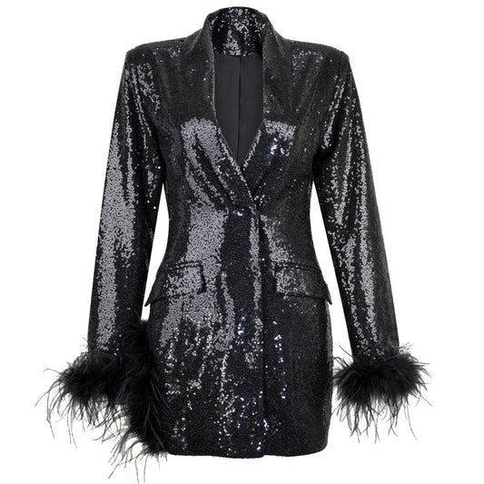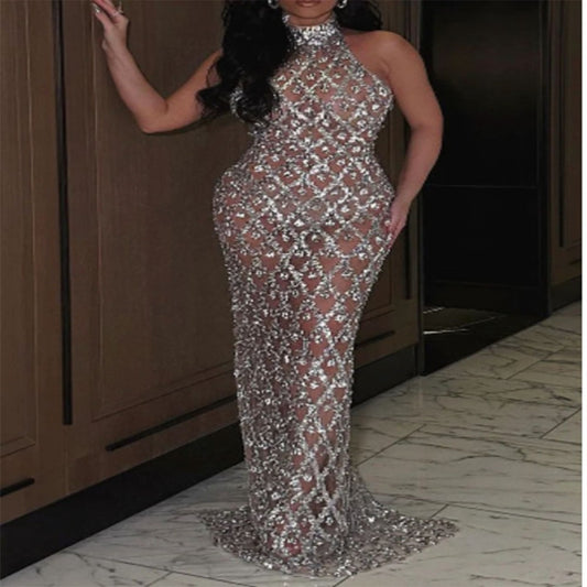 Women's Sequin Gauze Birthday Banquet Party Long Dress