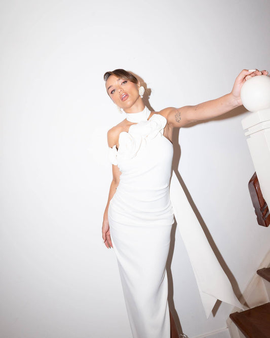 Wooden Ear Shoulder White Bandage One-piece Dress