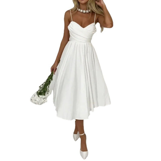 White Sling Dress Temperament Waist-controlled Simple Skirt
