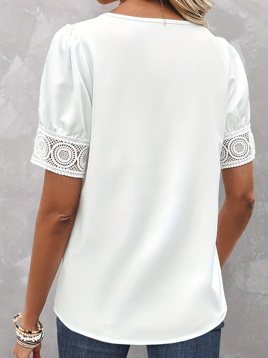 Solid Color Lace V-neck Patchwork Short Sleeve Shirt