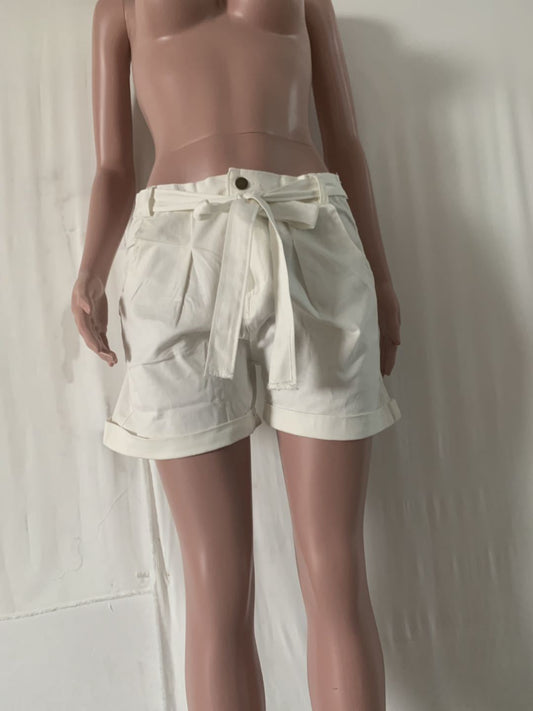 Hand-worn high waist denim shorts