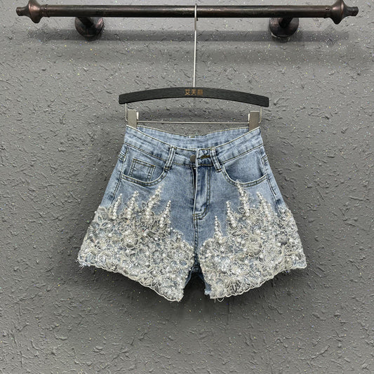 Heavy Industry Western Style Beaded Denim Shorts