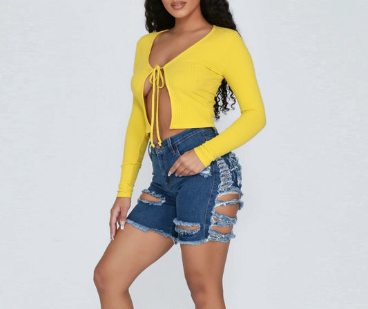Women's Denim Shorts With Fringed Holes