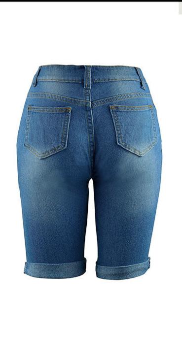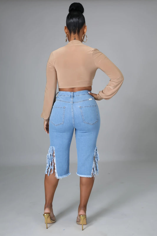 New Style Ripped Elastic Fringed Jeans Women High Waist Knee-length Casual Slim Fit