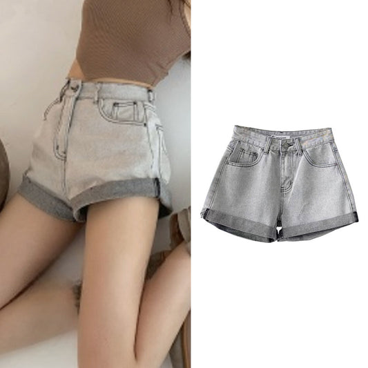 Women's American Retro Fashion Slimming High Waist Denim Shorts