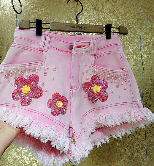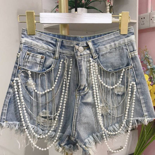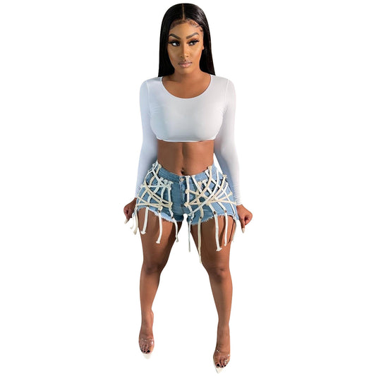 Mid-waist Ripped Sexy Fringed Denim Shorts