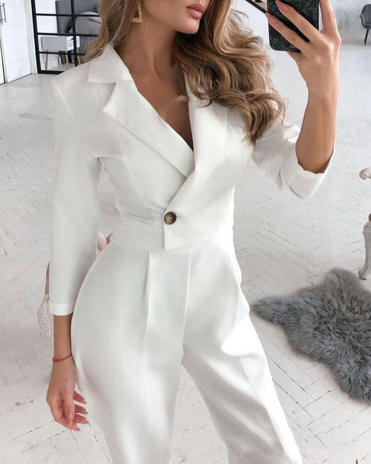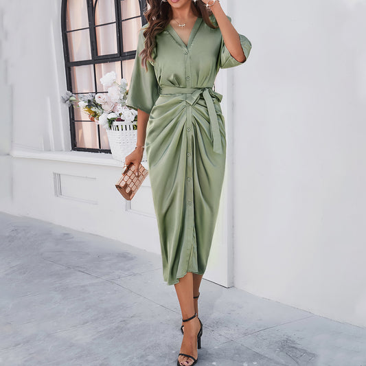 Women's Fashion Temperament Pure Color Slim Fit Dress