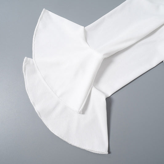 Women's Fashion Solid Color Bell Sleeve Tied Slim Fit Dress