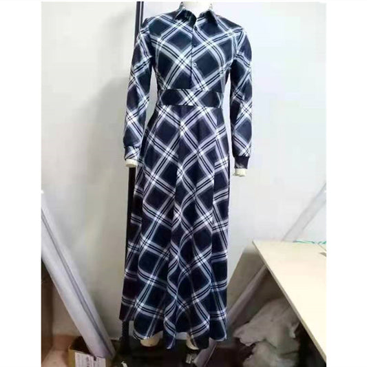 Plaid New Long Long Dress Black And White Temperament Commute Mid-waist Swing Dress