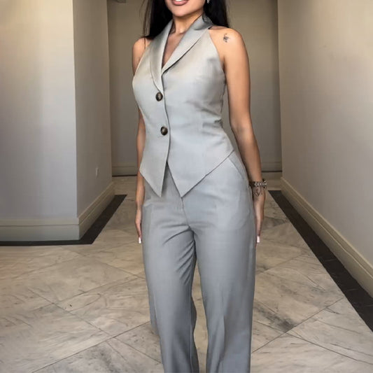 V-neck Suit Coat Straight Wide Leg Pants Two-piece Set