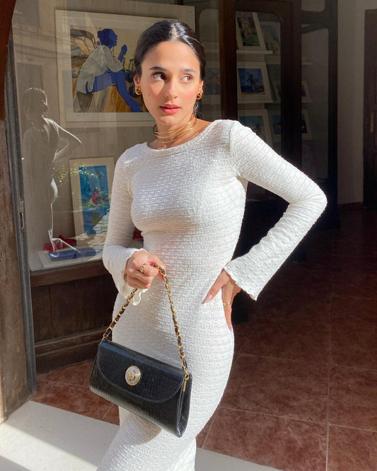 Back Lace Up Slim Fit Hollow Long Sleeve Dress
