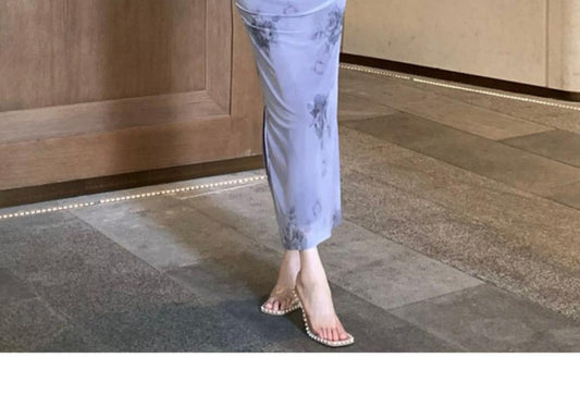 Printed Dress For Woman Backless Suspender Hip Skirt