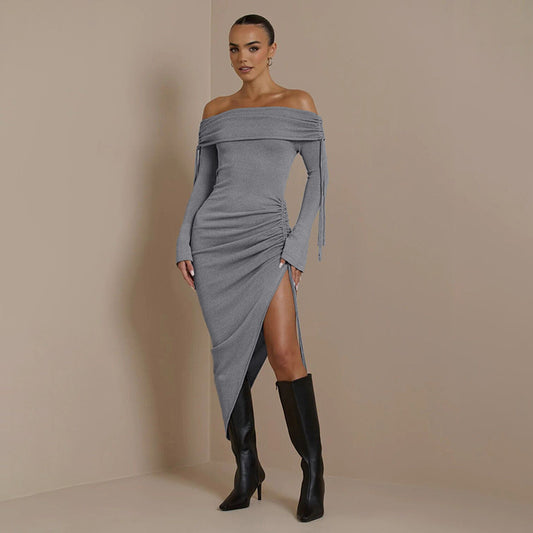 One-shoulder Long-sleeved Slim Hip Dress