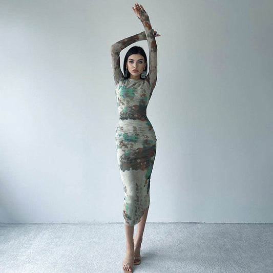 Fashion Women's Wear Slim-fit Printed Backless Dress