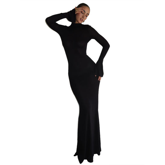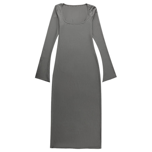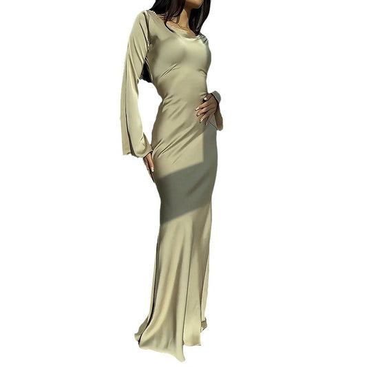 Women's Long-sleeved Solid Color Slim-fit Elegant Dress