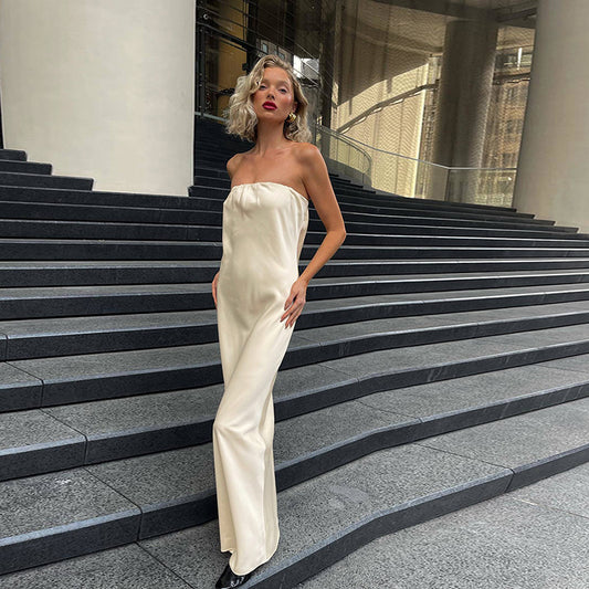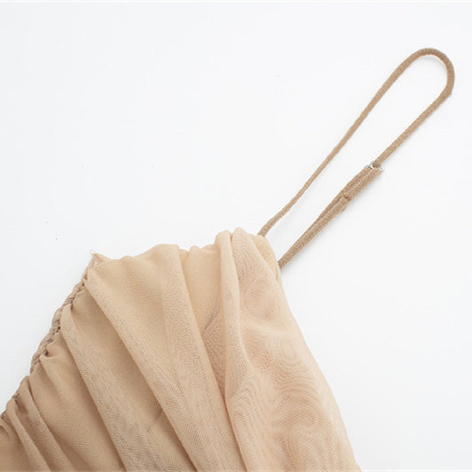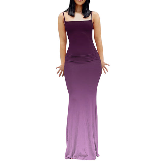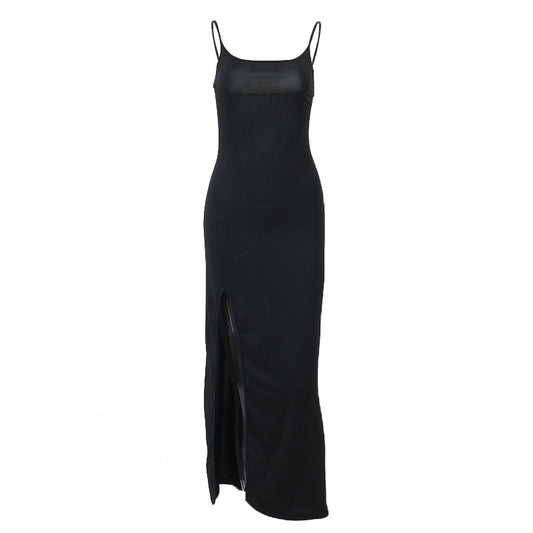 Solid Color Sling Waist Sexy Slit Sleeveless Dress