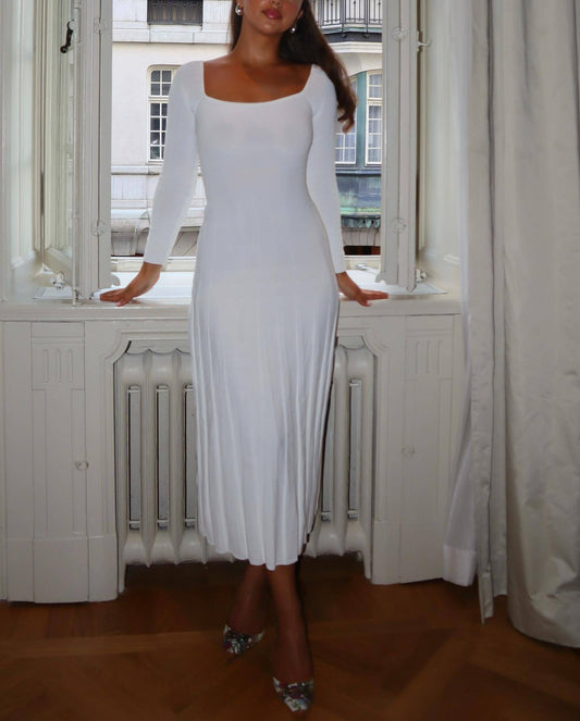 Women's Fashionable Elegant Slim Fit Square Collar Long-sleeved Knitted Dress