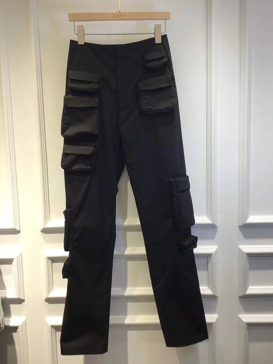 Three-dimensional Multi-pocket High-waist Slim Overalls Casual