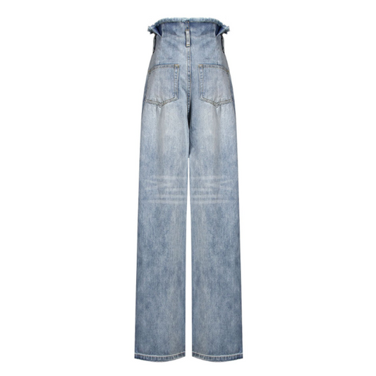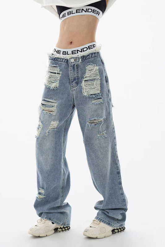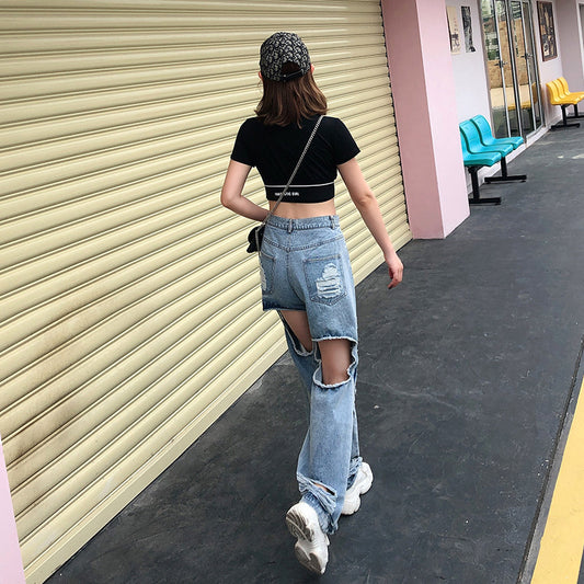 Ripped Jeans Women's High Waist Trendy High-looking Versatile Slimming Straight-leg Wide-leg Pants