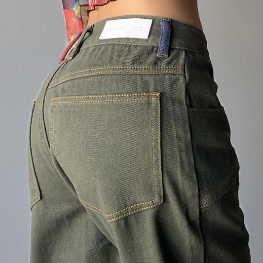 Retro Worn Looking Washed-out Slightly Flared Jeans