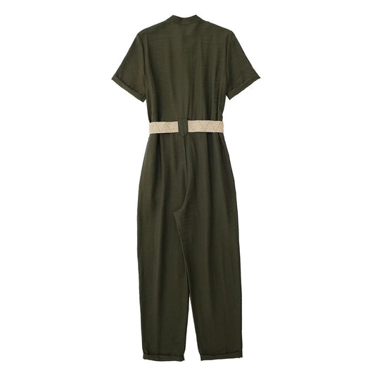 Women's Fashion Lapel Belted Cargo Jumpsuit
