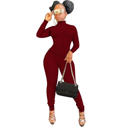 Women's Jumpsuit Fashion Colorblock Off-neck Waist