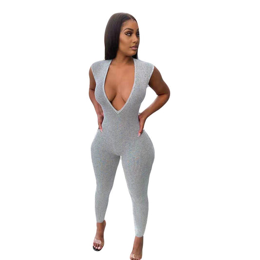 Women's Snake Deep V Neck Sleeveless Slim Jumpsuit