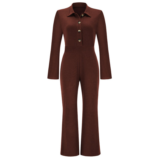 Women's Sexy Back Slim Straight Wide-leg Long-sleeved Casual Jumpsuit