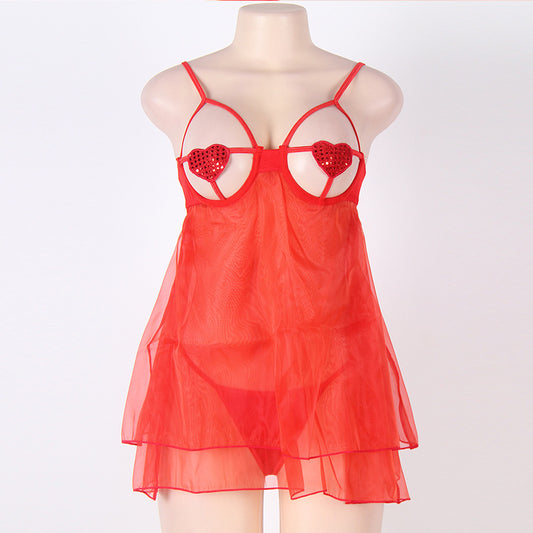 Valentine's Day Lace Mesh Seduction Braces Dress