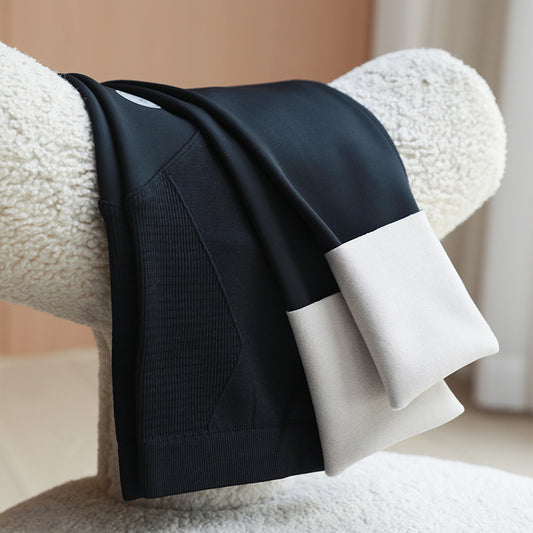 Fleece-lined Thick Cotton Vertical Stripes Belly Support Adjustable Pantyhose