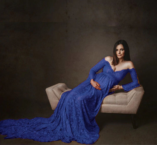Women's Lace Long-sleeved Mercerized Cotton Off-neck Maternity Dress