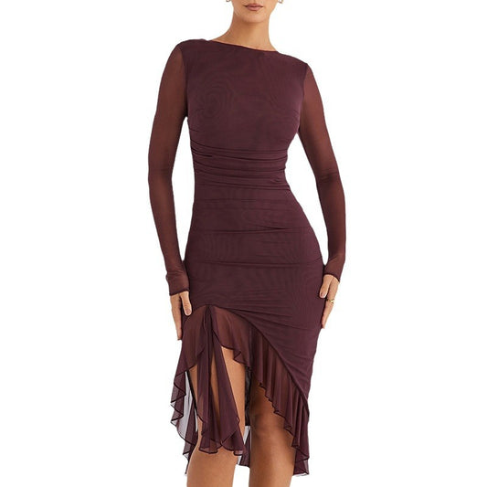 Women's Fashion Solid Color Long Sleeve Narrow Dress