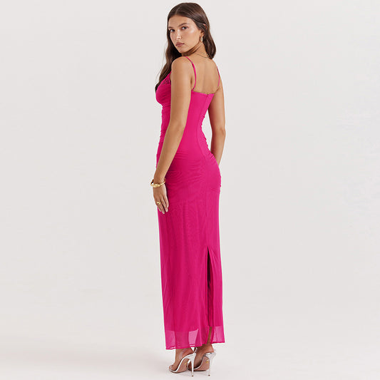 Sexy Suspender Tight Slim Skirt Fashion Split Ruffle Design Dress Summer Womens Clothing