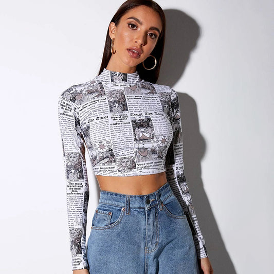 Fashion Printed Short T shirt Long Sleeves