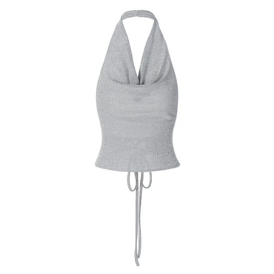 New Solid Color Metal Sexy Hot Girl Halter Sequin Sling Top