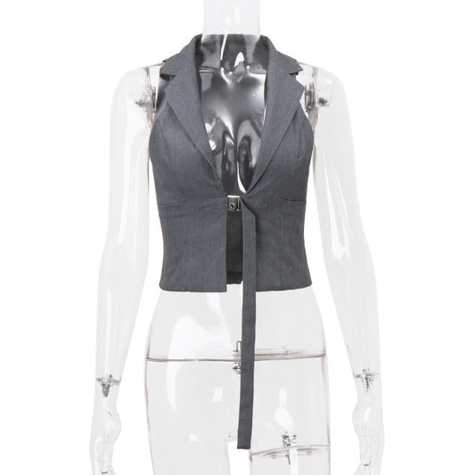 Elegant Lapel Tied Slim Fit Suit Halter Vest