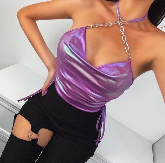 Tether Sequined Suspender Backless Steel Ring Corset Sexy Top