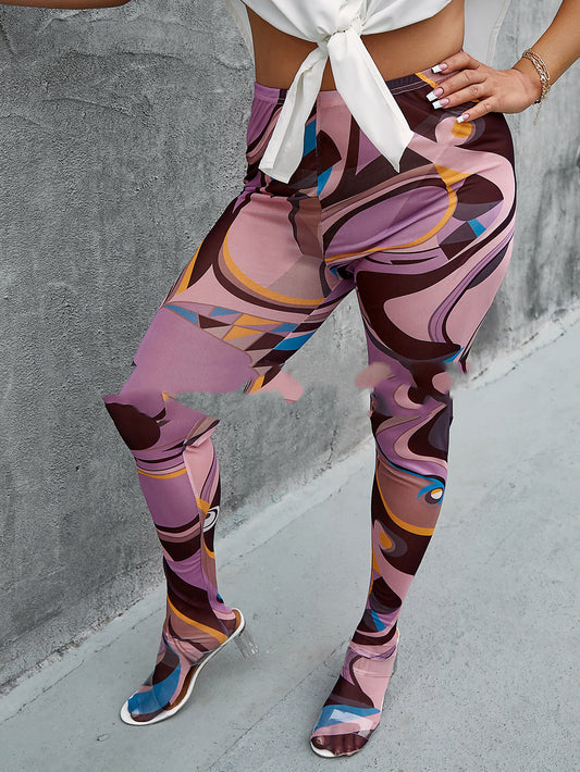 Mesh Printing Breathable High Waist Hip Lift Slim Casual Pants