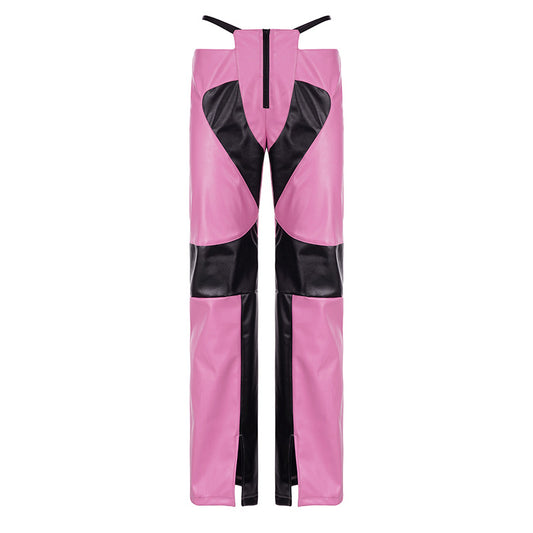 Women's Fashion Gradient Button Bright Leather Pencil Pants