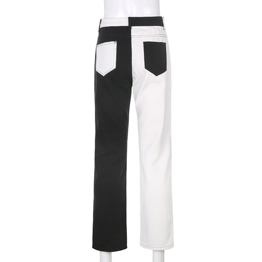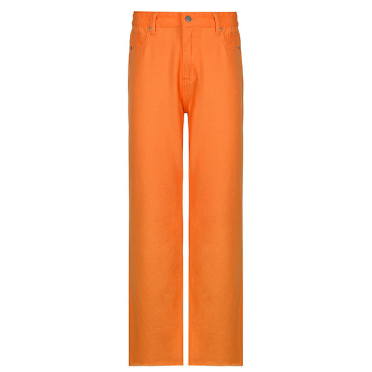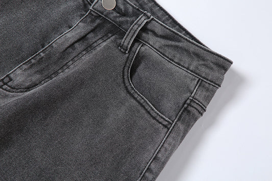 Asymmetrical Hole High-rise Buttocks Straight-leg Casual Jeans