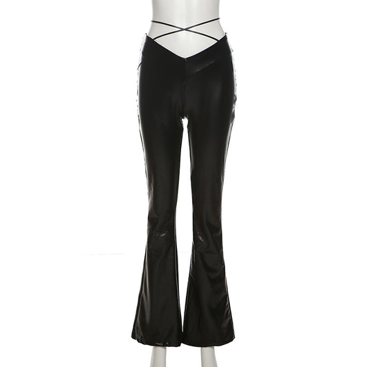 Faux Leather Sexy Low-rise Straight Leg Pants