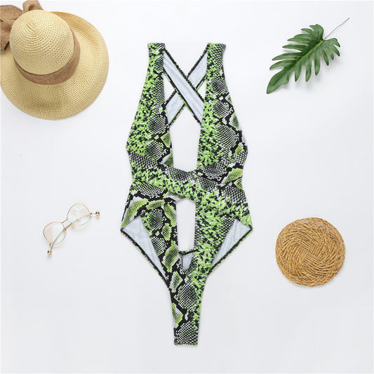 Explosive snake print one-piece swimsuit