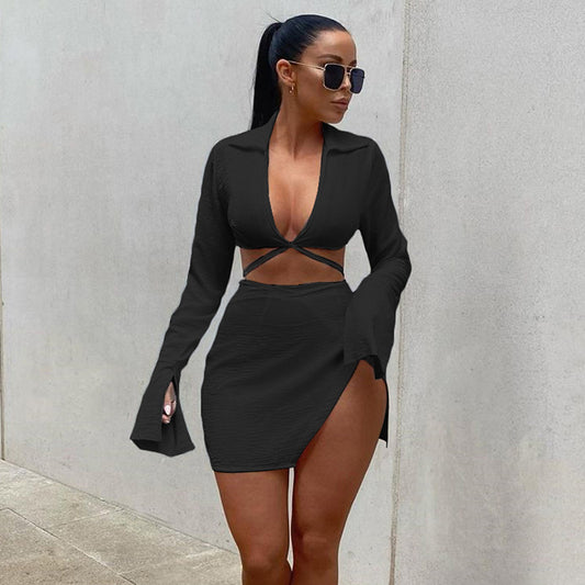 Hot Style Navel Tie Slit Skirt Suit